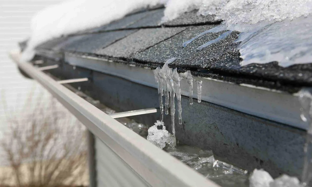 Common signs include icicles along your roofline, water stains on ceilings or walls, or visible ice buildup near your gutters. If left untreated, ice dams can cause significant damage.